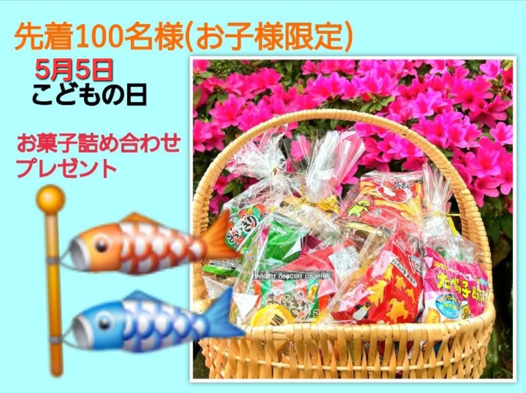 5月5日は、『こどもの日🎏』恒例のお菓子詰め合わせをプレゼント🎁いたします。🚠ロープウェイ🚠ご利用の先着100名のお子様限定です。